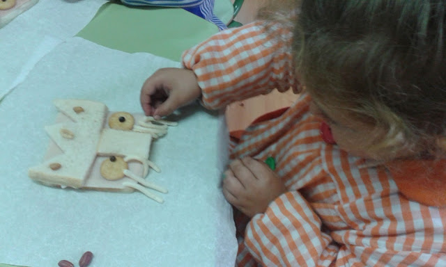 Unha vez montada a cara, lle poñemos a coroa, decorada cos cacahuetes.